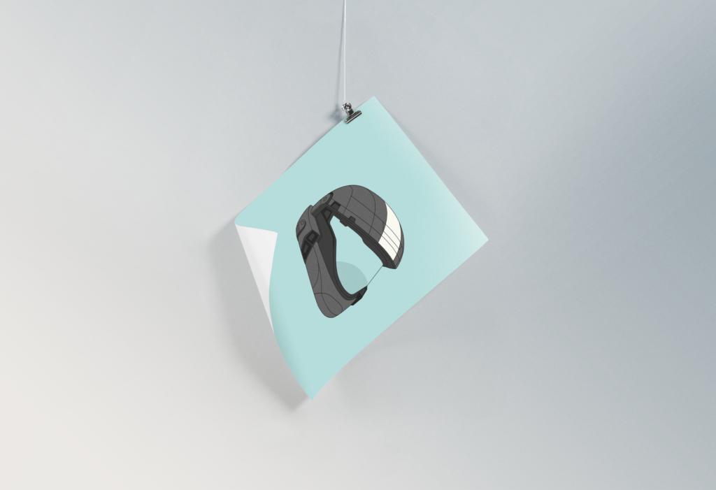 Basado en el casco de Halo-ODST con estilo de dibujo.